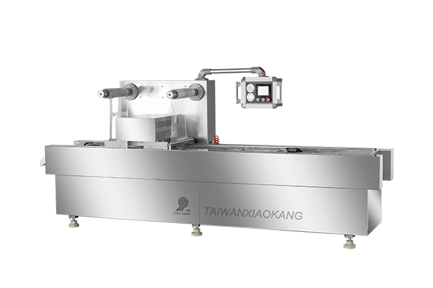 氣調盒式真空包裝機工作原理: 先將產品放在托盤里,再將托盤放入設備的放料區,托盤隨著鏈條的向前運行進入到封口模具里 ,模具上升,在封口模具里將上膜附在托盤上,先抽真空(可根據用戶產品包裝要求,在抽象真空 的基礎上,充氮氣或混合氣體進行包裝)封口、(上膜和托盤封在一起)沖切,最后排氣,降膜, 包裝好的產品隨著鏈條繼續向前運行,從出料口出料。設備還附加了光電跟蹤對齊彩膜系統,為用 ...